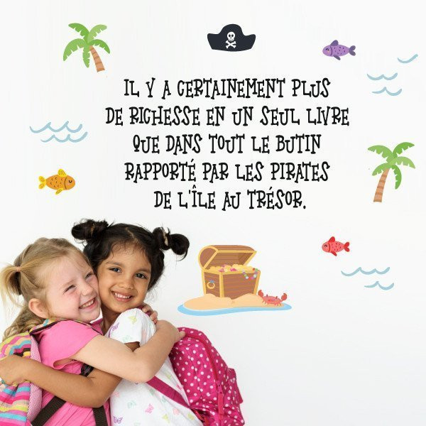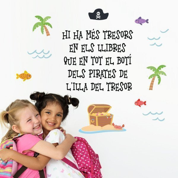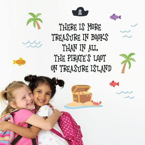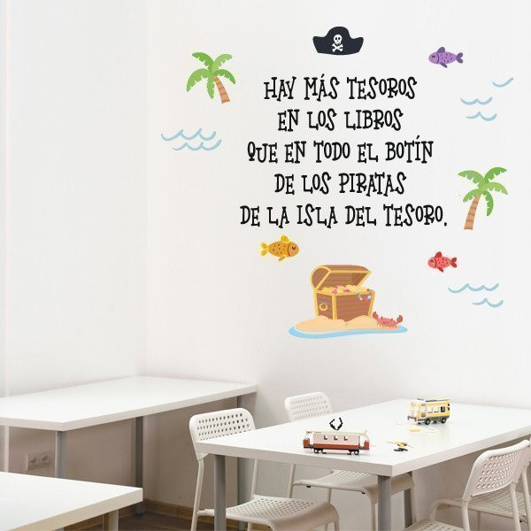 En la película de la Isla del Tesoro, de Walt Diseny, aparecía una maravillosa frase digna de recordar para todos; Hay más tesoros en los libros que en todo el botín de los piratas. En StarStick la encontramos tan acertada que hemos creado con ella un alegre mural para decorar bibliotecas, espacios de lectura y todo tipo de espacios infantiles. Puedes elegir tamaño, idioma y color de las letras.