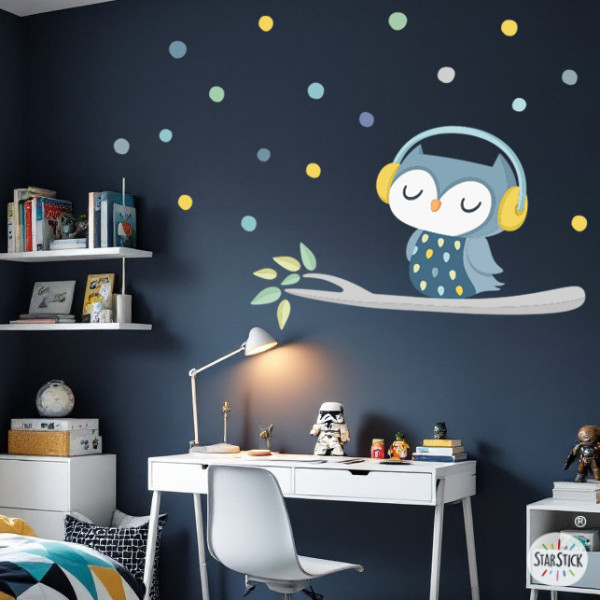 Este vinilo infantil es fácil de colocar y está fabricado con materiales de alta calidad que garantizan su durabilidad y resistencia. El vinilo decorativo infantil de búho escuchando música de StarStick es una opción perfecta para las niñas amantes de la naturaleza, la música y la creatividad. Les inspirará a soñar, imaginar y crear su propio mundo mágico. Añade un toque de dulzura y diversión a la habitación de tu hija con este encantador vinilo mural.