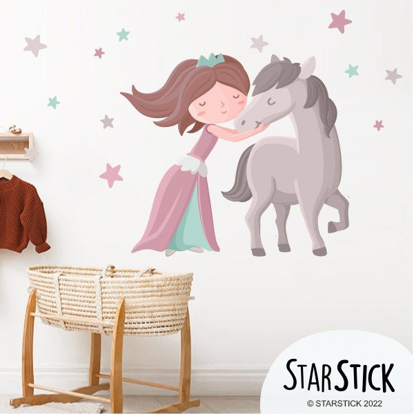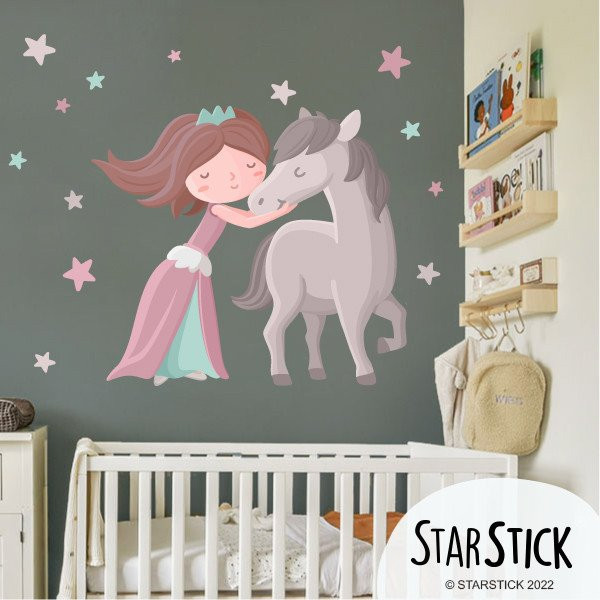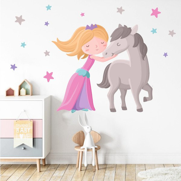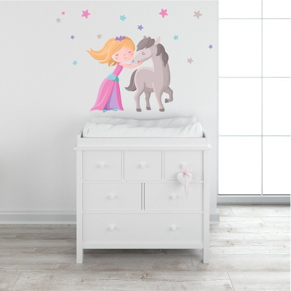 Si a tu hija le encantan las princesas y los majestuosos caballos, aquí tienes el vinilo decorativo ideal para ella.