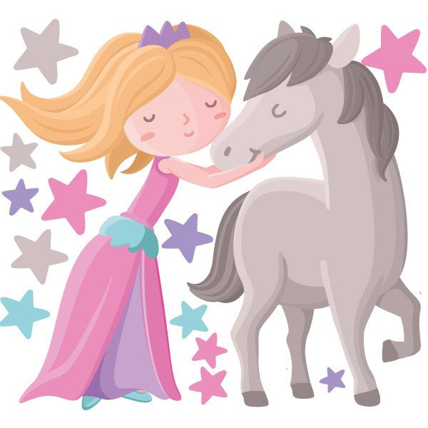 Vinilo para niñas Princesa y caballo - Vinilos infantiles decorativos