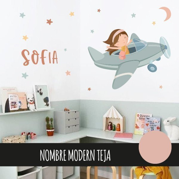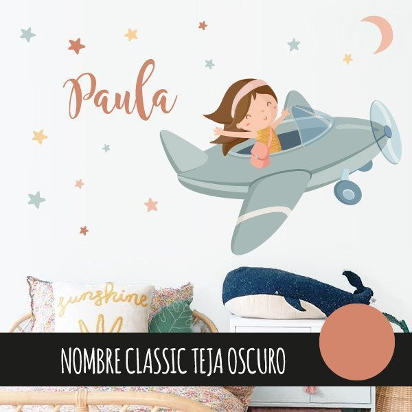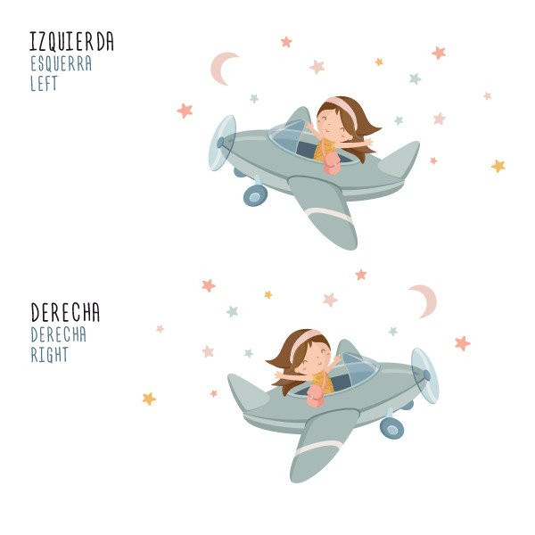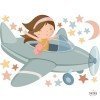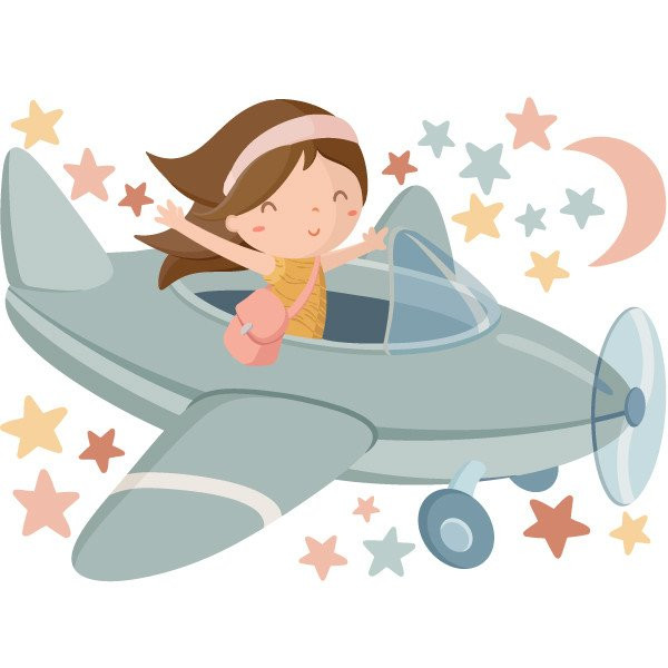 Decoración infantil - Niña viajando en avión - Vinilos decorativos