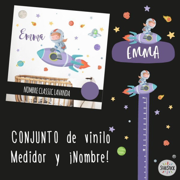Completo vinilo decorativo con un cohete, una niña disfrazada de astronauta, estrellas y otros pequeños complementos que permiten ampliar el mural; planetas, cometas…. Descubre un mundo de ideas fascinantes para decorar las paredes de las habitaciones infantiles. Con nuestra amplia gama de opciones, lograrás convertir cada rincón en un lugar lleno de imaginación para los más pequeños. Transforma sus mundos con creatividad y estilo gracias a nuestros vinilos decorativos de alta calidad.
