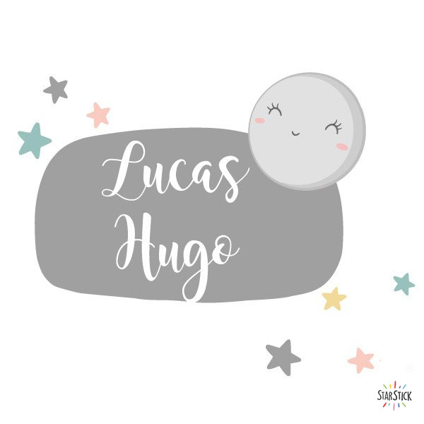 Fantástico vinilo personalizable con uno o dos nombres. Pegatinas infantiles para decorar puertas, paredes, muebles… Existen distintos productos a juego con este vinilo. Combínalos y conseguirás una decoración maravillosa.