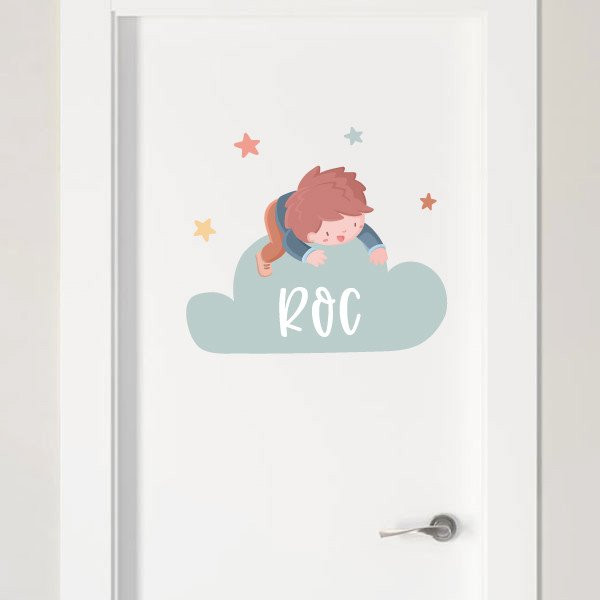 Vinilo personalizado con uno o dos nombres. Se puede elegir si se desea con la imagen de un niño, una niña o la versión con los dos hermanos. Una idea genial para decorar las puertas de las habitaciones compartidas.