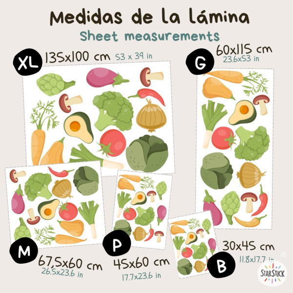 Decoración de comedores escolares | Vinilos para ventanas de verduras Montessori