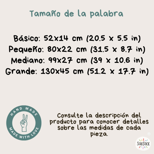 ¿Quieres personalizar tu decoración con un nombre a juego? ¡Elígelo aquí y combina colores y medidas como prefieras!