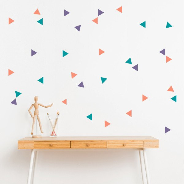 Vinilo decorativo con triángulos color a escoger. Vinilos de formas geométricas para combinar como más te gusten. Puedes crear formas, letras o esparcir de forma irregular. ¿Empezamos?