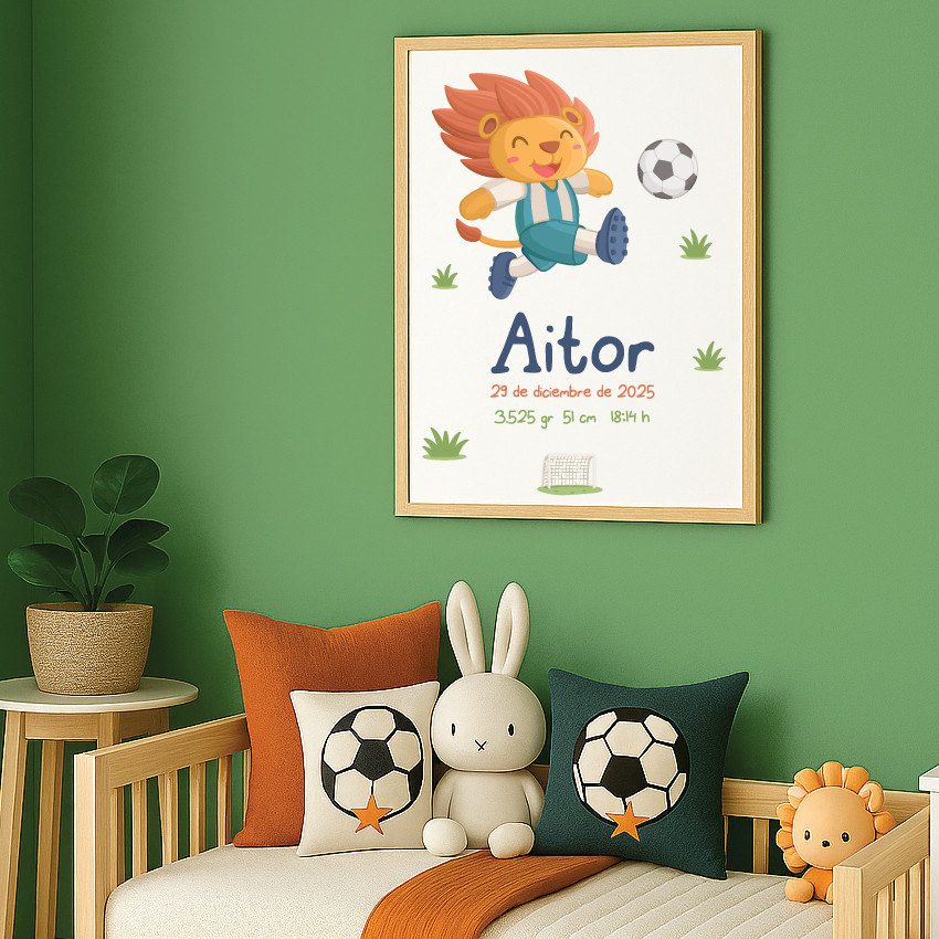| Produit de base | Affiche de naissance bébé – Lion footballeur | Cadeau original et tendre pour nouveau-nés | 19,12 € | ||