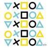 Sticker décoratif de jeux vidéo pour adolescents, avec un design gamer composé de triangles, cercles, carrés et croix.