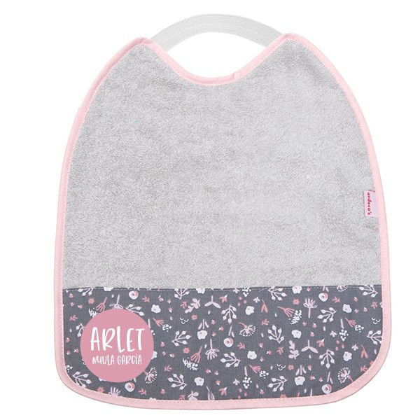 Personnaliser votre sticker avec un prénomBavoirs bouclés, doublés de plastique à l’intérieur et caoutchouc sur le dessus.
