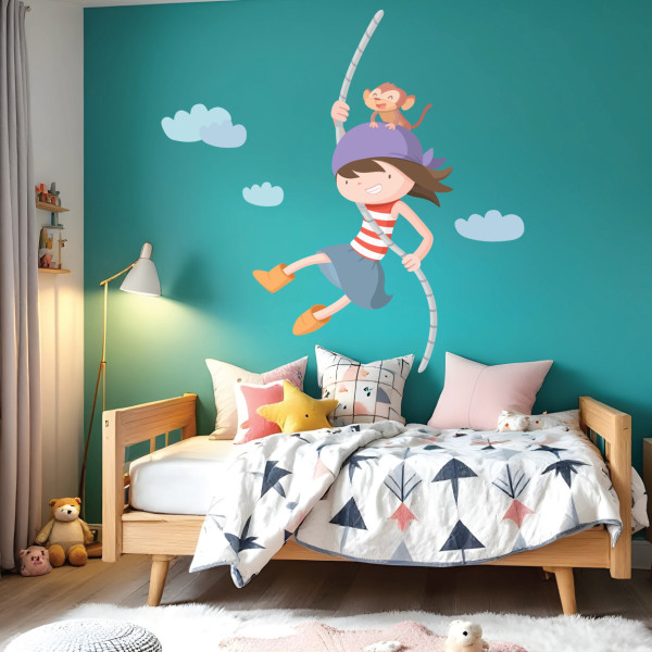 Embarquez dans une aventure pirate avec notre vinyle pour enfants d'une fille pirate courageuse et de son sympathique singe ! Ce vinyle est parfait pour décorer les chambres d'enfants, les aires de jeux, les écoles et tout espace où les petits aventuriers veulent laisser libre cours à leur imagination de manière originale et amusante. Le design présente une fille pirate intrépide dans son foulard et son compagnon singe, créant une scène pleine d'action et de plaisir. Vous pourrez choisir entre le modèle garçon pirate ou le modèle fille pirate, selon les préférences de votre bout de chou ou petite fille.