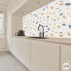 Papier adhésif avec des coups de pinceau dans les tons de ocre et bleu gris. Des papiers peints de haute qualité adaptés aux murs, meubles, carrelages... Ne vous limitez pas et laissez libre cours à votre imagination.