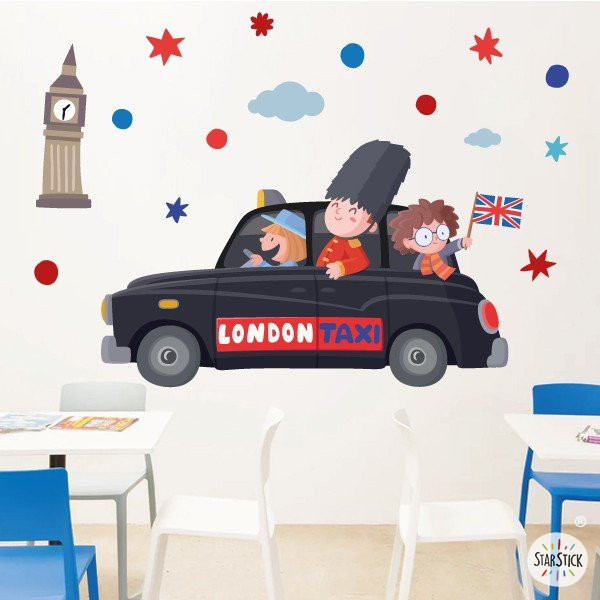 Vous souhaitez donner une touche personnelle et authentiquement britannique à vos cours d'anglais ? Alors notre sticker avec un taxi anglais emblématique est parfait pour vous ! Ce vinyle est le moyen idéal pour créer une ambiance unique et amusante dans votre académie ou école. Vous pouvez le personnaliser avec le nom de votre académie, ce qui en fait un excellent outil de branding. De plus, vous pouvez choisir parmi une variété de couleurs pour les étoiles, que ce soit dans des nuances vives ou dans du bleu et du rouge classiques.