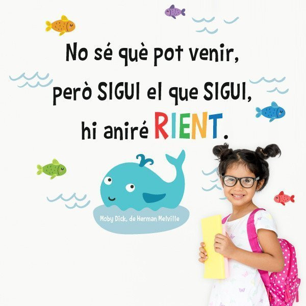 Stickers décoratifs avec phrases. Parfait pour décorer les murs des instituts, des écoles et des centres publics. Chaque élément qui compose la fresque est indépendant, il peut être collé avec la composition que chacun préfère en fonction du mur qu'il souhaite recouvrir. Ils sont très faciles à installer et peuvent être personnalisés en couleur, taille et langue. Phrase du roman Moby Dick, d'Herman Melville
