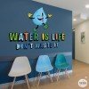 Stickers décoratifs conçus pour promouvoir l’utilisation responsable de l’eau dans les espaces publics.