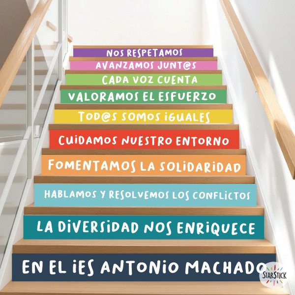 Stickers de haute qualité conçus pour décorer les escaliers des établissements scolaires.