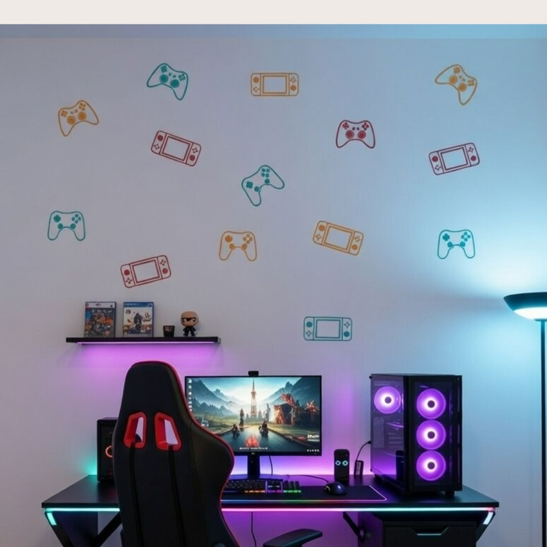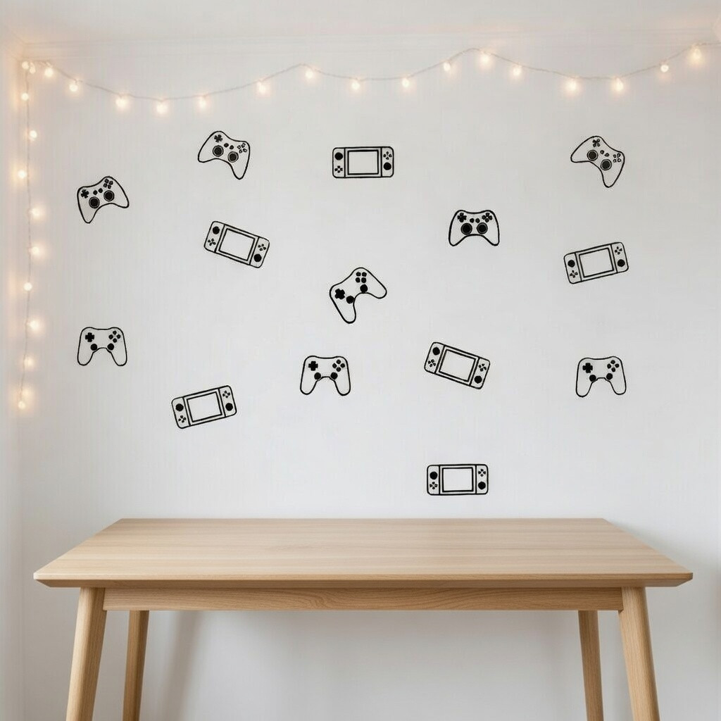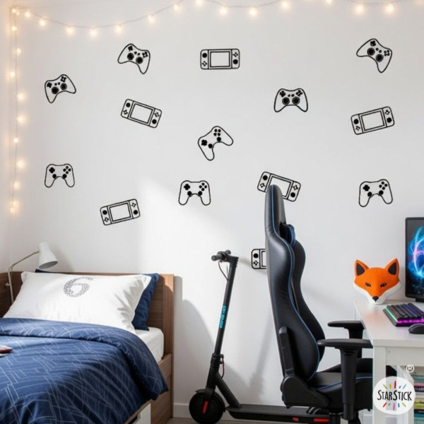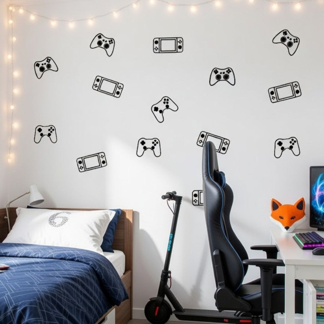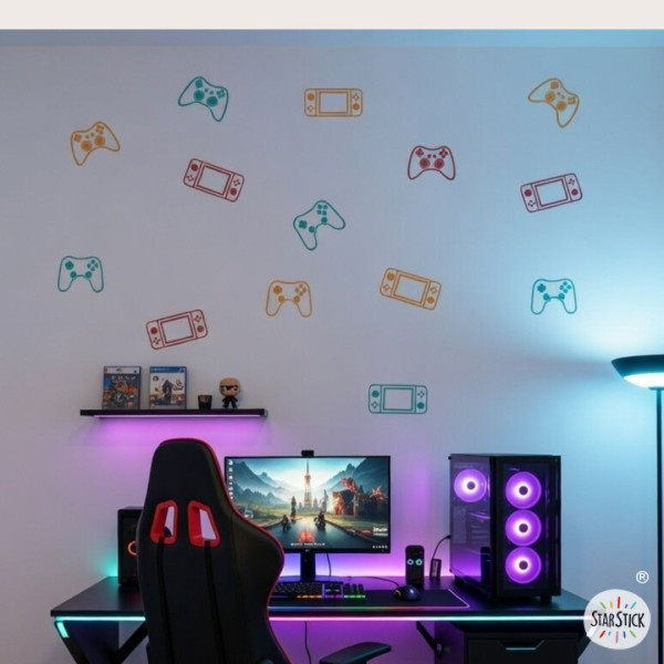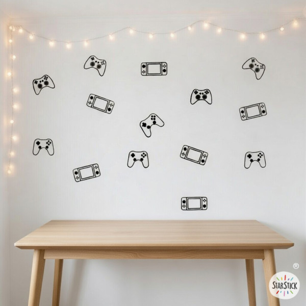 Et pour les adolescents gamers fans de consoles et de jeux vidéo, nous leur proposons un vinyle de jeu vidéo parfait pour eux. Boutons de différentes formes et couleurs pour décorer les murs des chambres ou des aires de jeux. Toutes les commandes peuvent être achetées dans la même couleur ou combiner jusqu'à trois couleurs différentes.