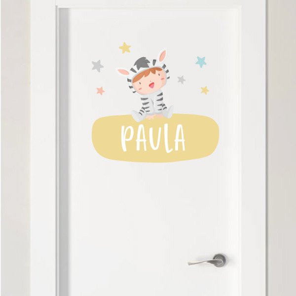 Vinyles décoratifs personnalisables avec un ou deux noms. Trois modèles différents à coller sur les portes, les murs, les meubles, les têtes de lit... Osez et décorez la nouvelle chambre de votre bébé de façon originale et amoureuse. Remplissez-le de tendresse et de joie avec les vinyles amusants de la collection ; bébés costumés. Zèbres, tigres, licornes ...
