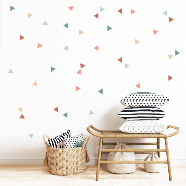 Stickers décoratifs avec triangles dans des tons terre. Autocollants de grande qualité pour décorer facilement et rapidement tous les types de murs.