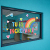 Décorez vos fenêtres avec ce sticker décoratif créé spécialement pour les vitres. Il inclut le message motivant « Tu es incroyable » et un arc-en-ciel. Idéal pour les écoles, les classes et les centres éducatifs. Facile à appliquer, résistant et parfait pour créer des espaces positifs et accueillants.